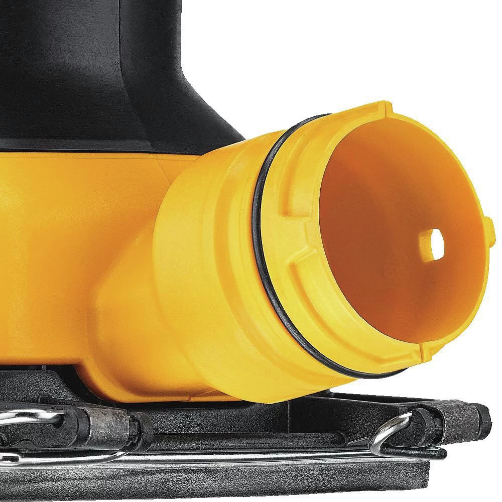 1/4 sheet palm sander has a 2.3 amp motor that delivers 14,000 OPM. The separate counterweight reduces vibration and along with the rubber overmold grip provides comfortable sanding. A shorter design allows users to get closer to the work surface and the one-handed locking dust bag attaches securely to the sander to aid in dust collection. The new paper clamp holds sandpaper securely during sanding.
