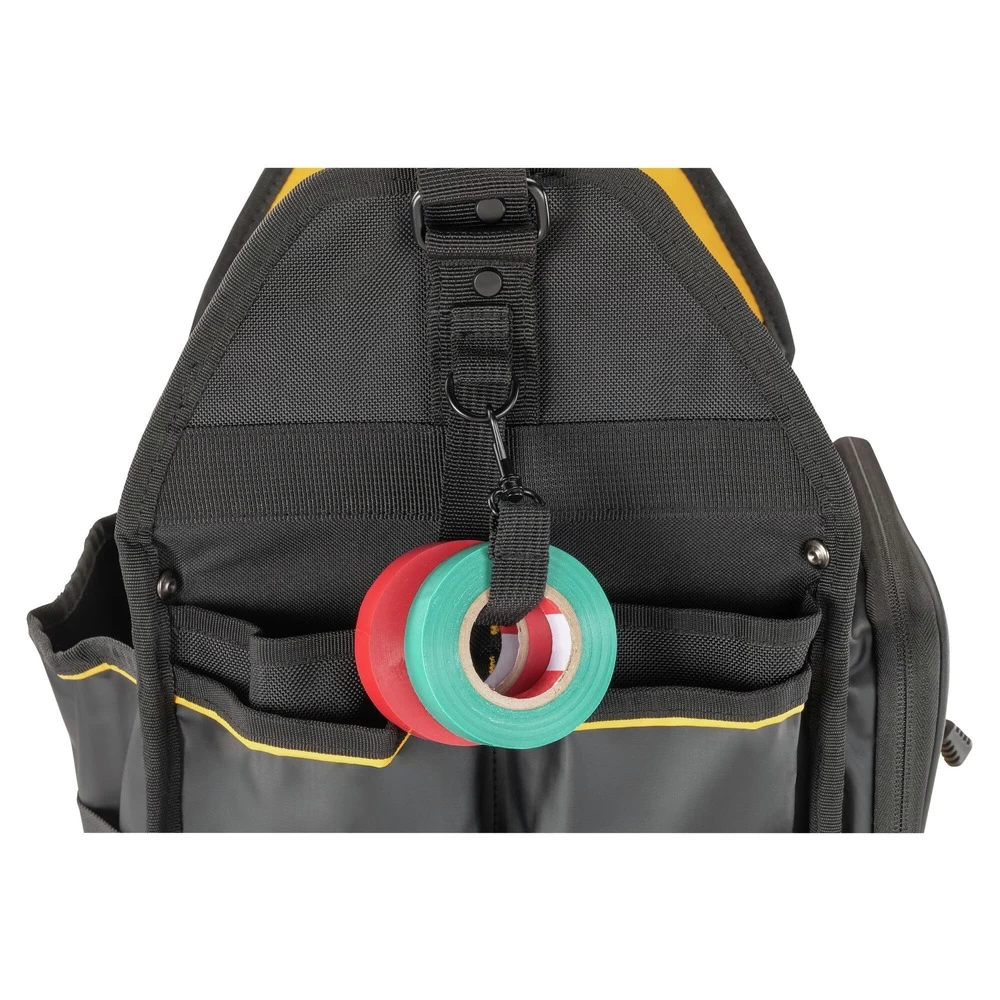 Store and transport tools with ease on demanding jobsites with 34 pockets and an IP54 water-resistant compartment. The DEWALT 11 in. Pro Electrician Tote features a durable construction designed to withstand harsh conditions and a zippered front pocket to help protect personal valuables.