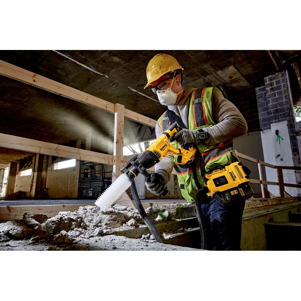 The 20V MAX Brushless Lithium-Ion 1-1/8 in. Rotary Hammer is a high-performance drill powered by a brushless motor and a durable German-engineered mechanism, delivering 3 Joules of impact energy. The lightweight design makes this tool ideal for forming, #3 to #5 post installed rebar dowelling, tilt wall support, rod hanging, beam and column anchorage, and steel stanchion mounting. It is part of the PERFORM and PROTECT product line, integrated with the SHOCKS ACTIVE VIBRATION CONTROL System and becomes OSHA Table 1 Compliant when used with the DWH205DH On Board Extractor.