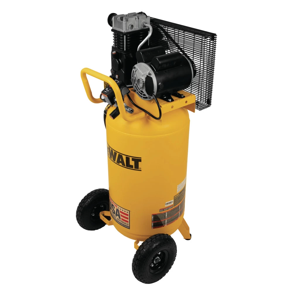 The DEWALT 25 Gallon Oil Lubed Belt Drive Air Compressor is industry leading with 2-stage performance. With 200 maximum PSI, this air compressor provides 76% more air tool runtime versus 30 Gal. 155 PSI compressors. At 78 dBA, the oil lubricated twin cylinder pump with cast iron construction allows for a quieter work environment. The 10 in. pneumatic wheels allow easy transport on jobsites and inside your garage or shop. The DEWALT 25 Gal. 200 PSI air compressor is perfect for light automotive tasks, medium duty metal working and agricultural equipment repairs.