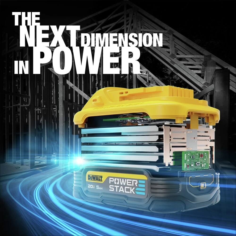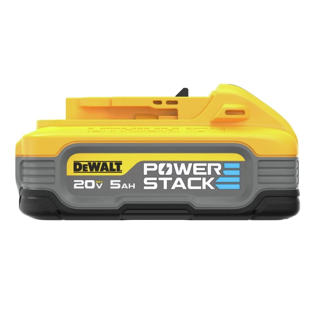 Our most powerful battery in its class, the 20V MAX DEWALT POWERSTACK 5 Ah Battery utilizes revolutionary pouch cell technology to deliver 50% more power, 50% more work per charge, and 2X the lifespan. Compatible with all DEWALT 20V MAX tools and chargers, the DEWALT POWERSTACK 5 Ah Battery features an impact-resistant, rubber over molded base, and includes 3-LED Fuel Gauge state of charge indicator.