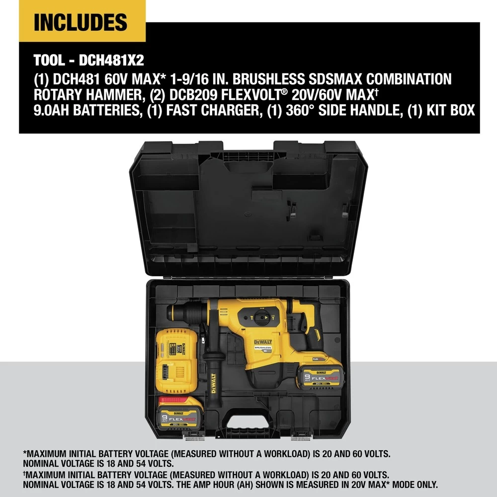 60V MAX Brushless Lithium-Ion Cordless 1-9/16 in. SDS MAX Combination Rotary Hammer – DCH481