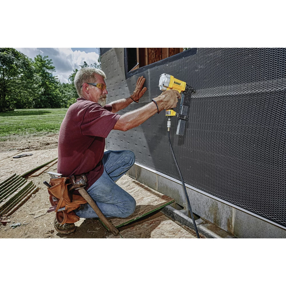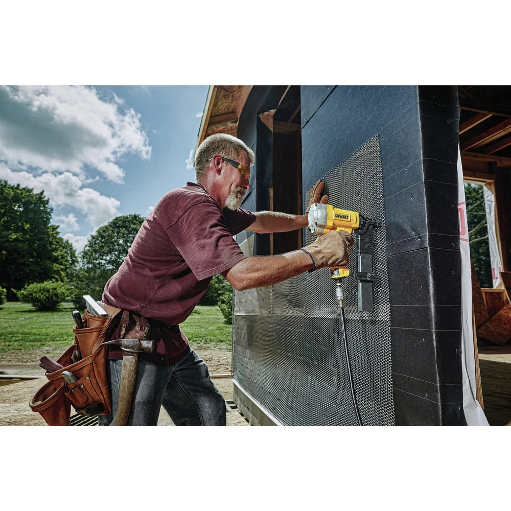 Reliable performance, the DW451S2 16-Gauge Wide Crown Lathing Stapler offers an array of features. Equipt with a tool-free jam release mechanism for easy staple removal and an adjustable depth guide for precise setting of fasteners. The DW451S2’s compact lightweight design helps reduce fatigue during extended use. The rubber grip provides comfort and control.